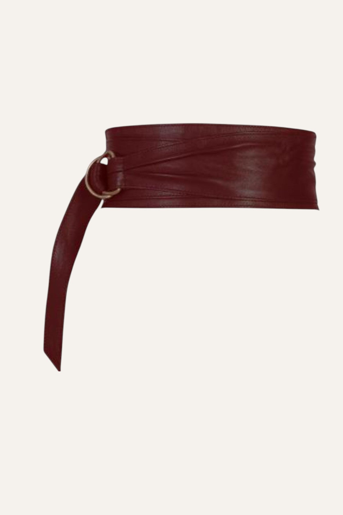 Cinturón de napa de alta calidad de color burdeos, hecho a mano por expertos artesanos. El accesorio más sexy de tu armario, manteniendo siempre un aire sofisticado. Su diseño multiposición lo convierte en un accesorio funcional y atemporal. No querrás quitártelo.