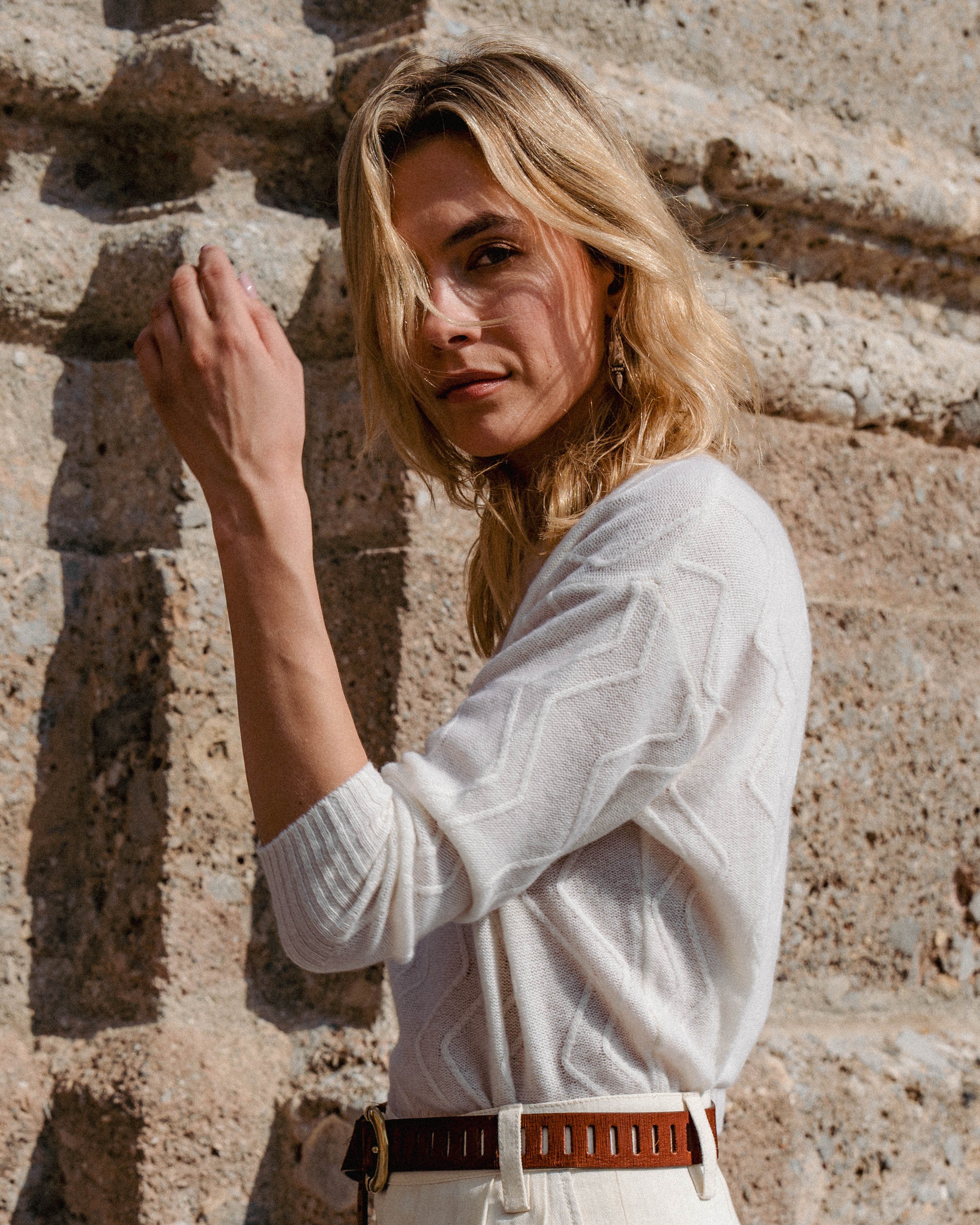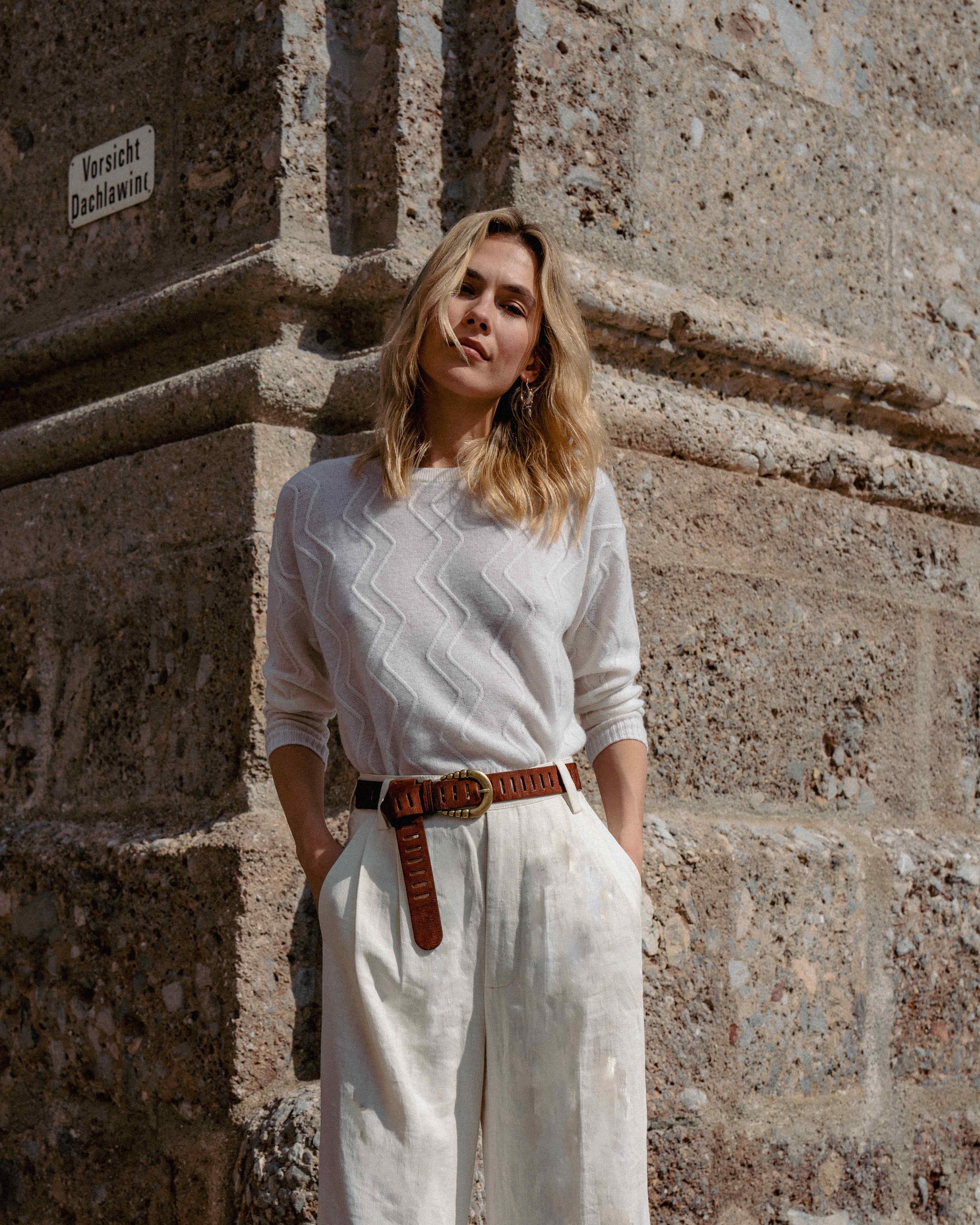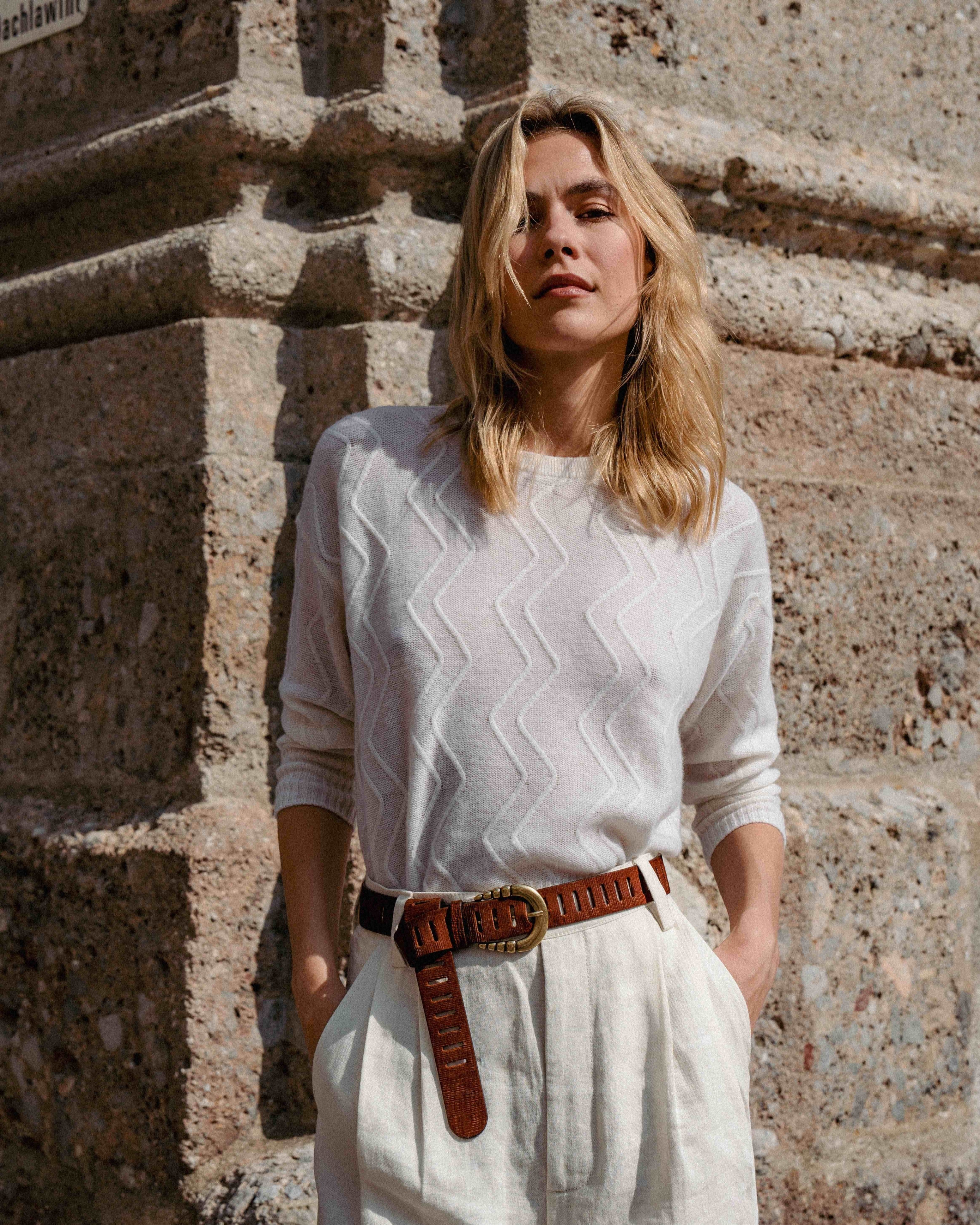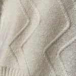 Uno de nuestros imprescindibles este invierno es nuestro jersey 100% cashmere en color blanco roto con nuestro icónico relieve en zigzag al tono.