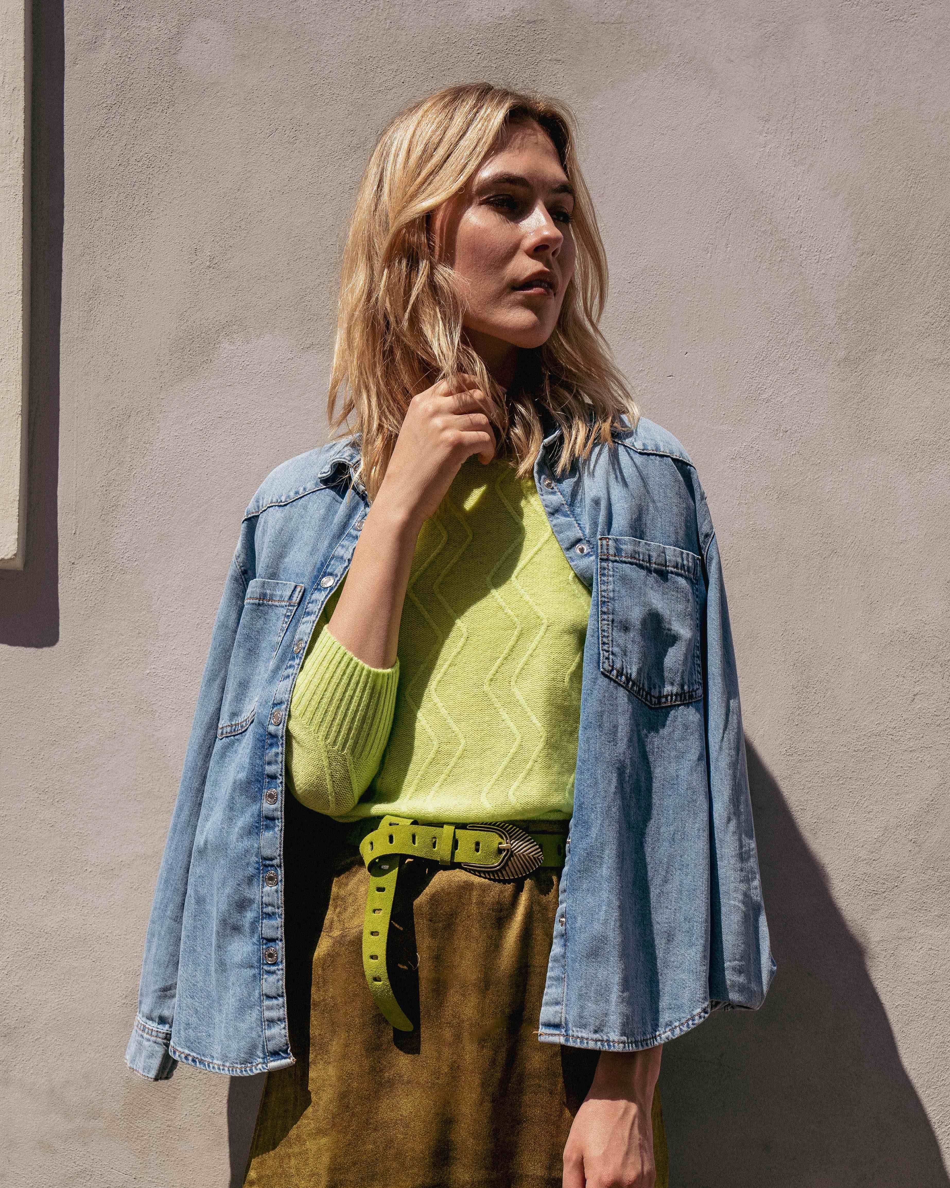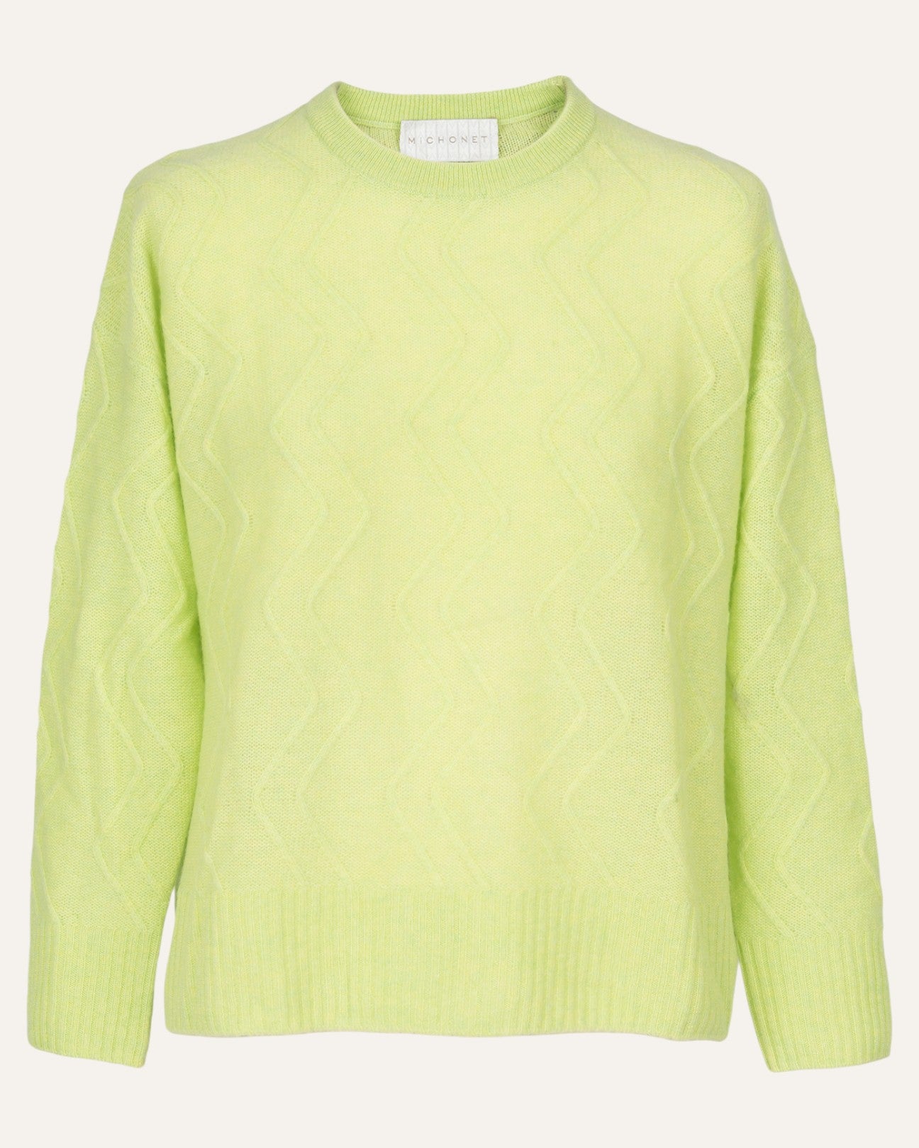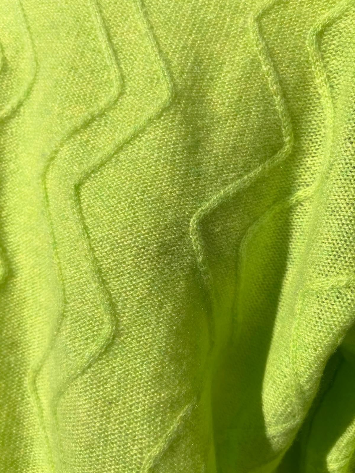 Uno de nuestros imprescindibles este invierno es nuestro 100% cashmere en tono lima con nuestro icónico relieve en zigzag al tono.