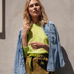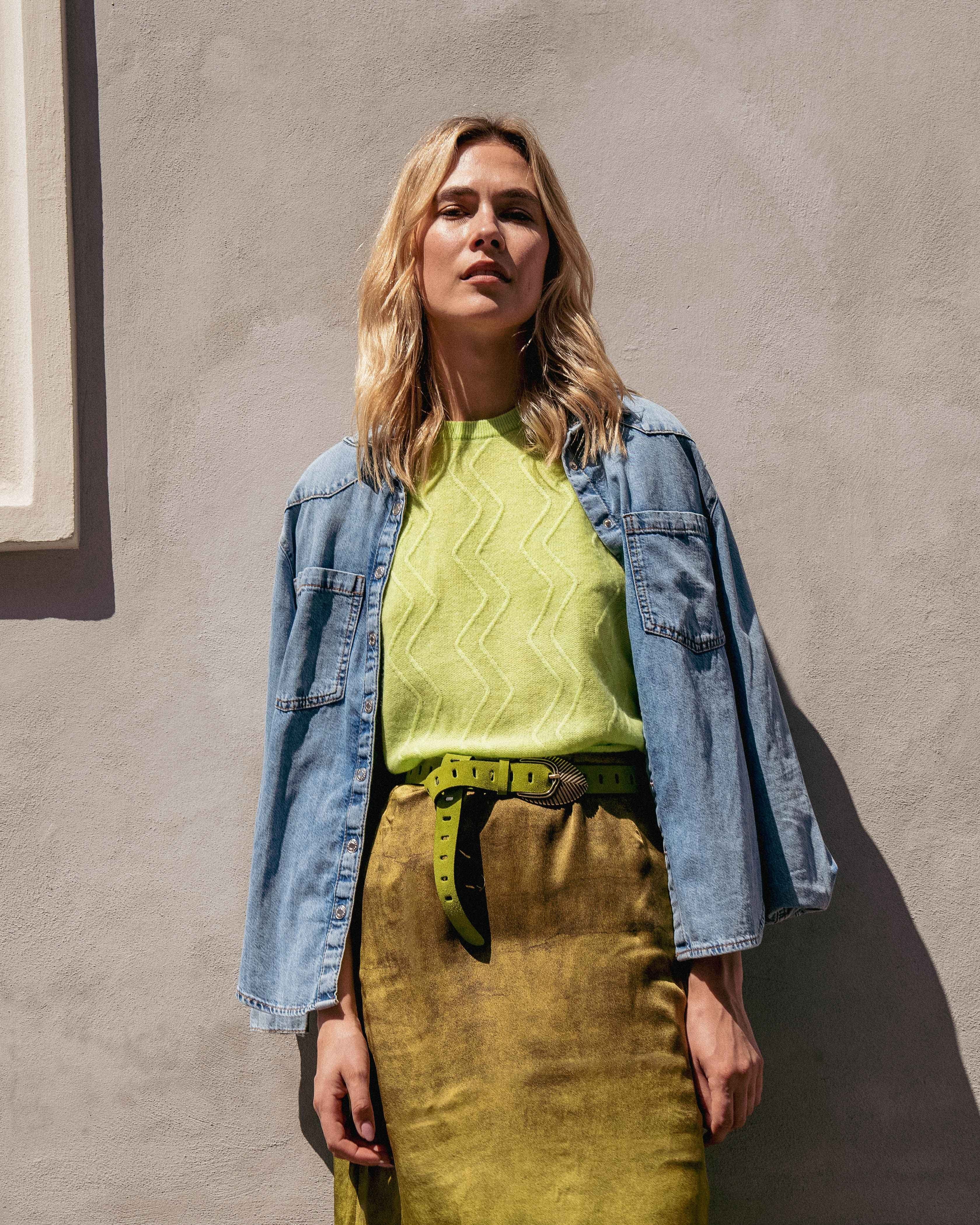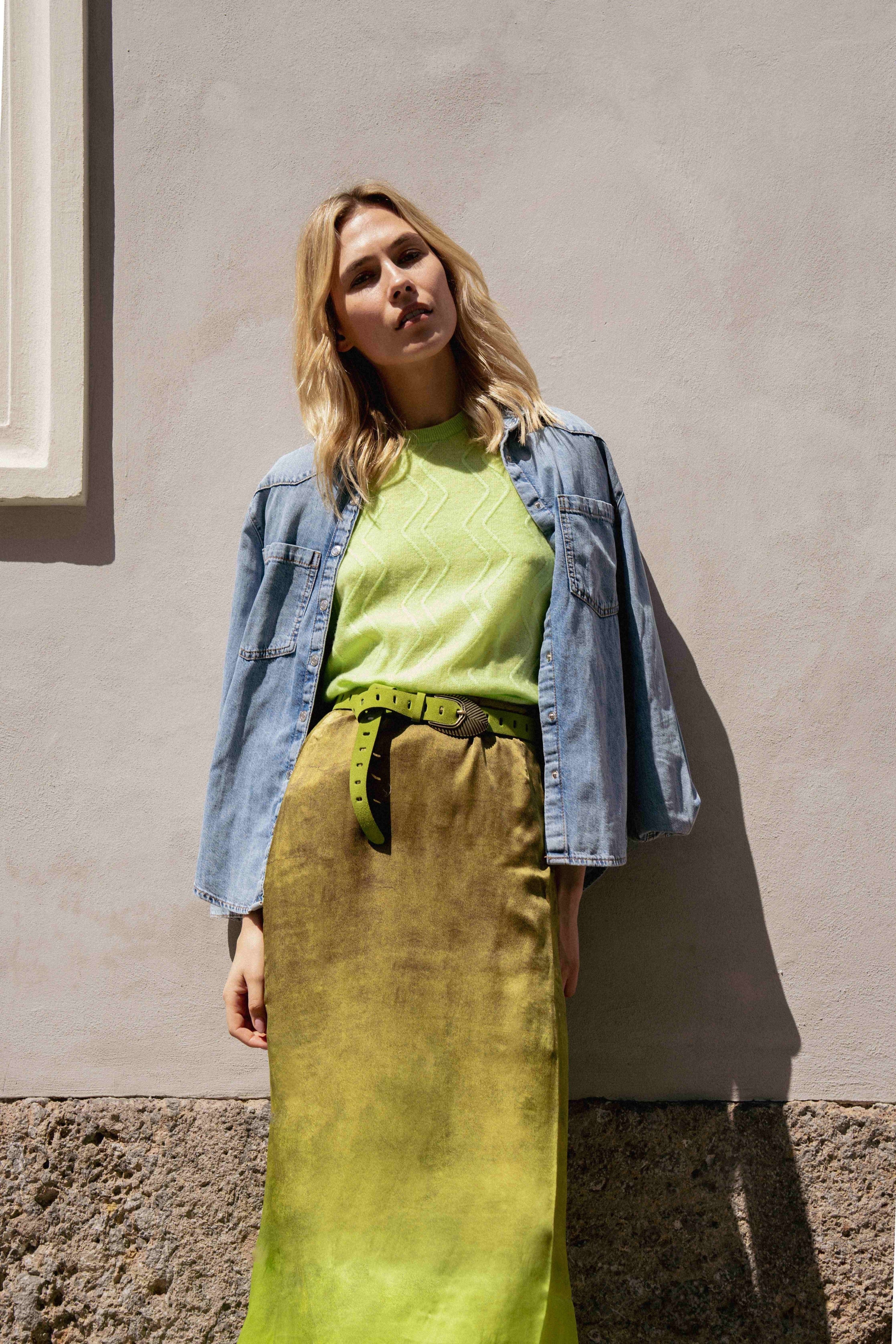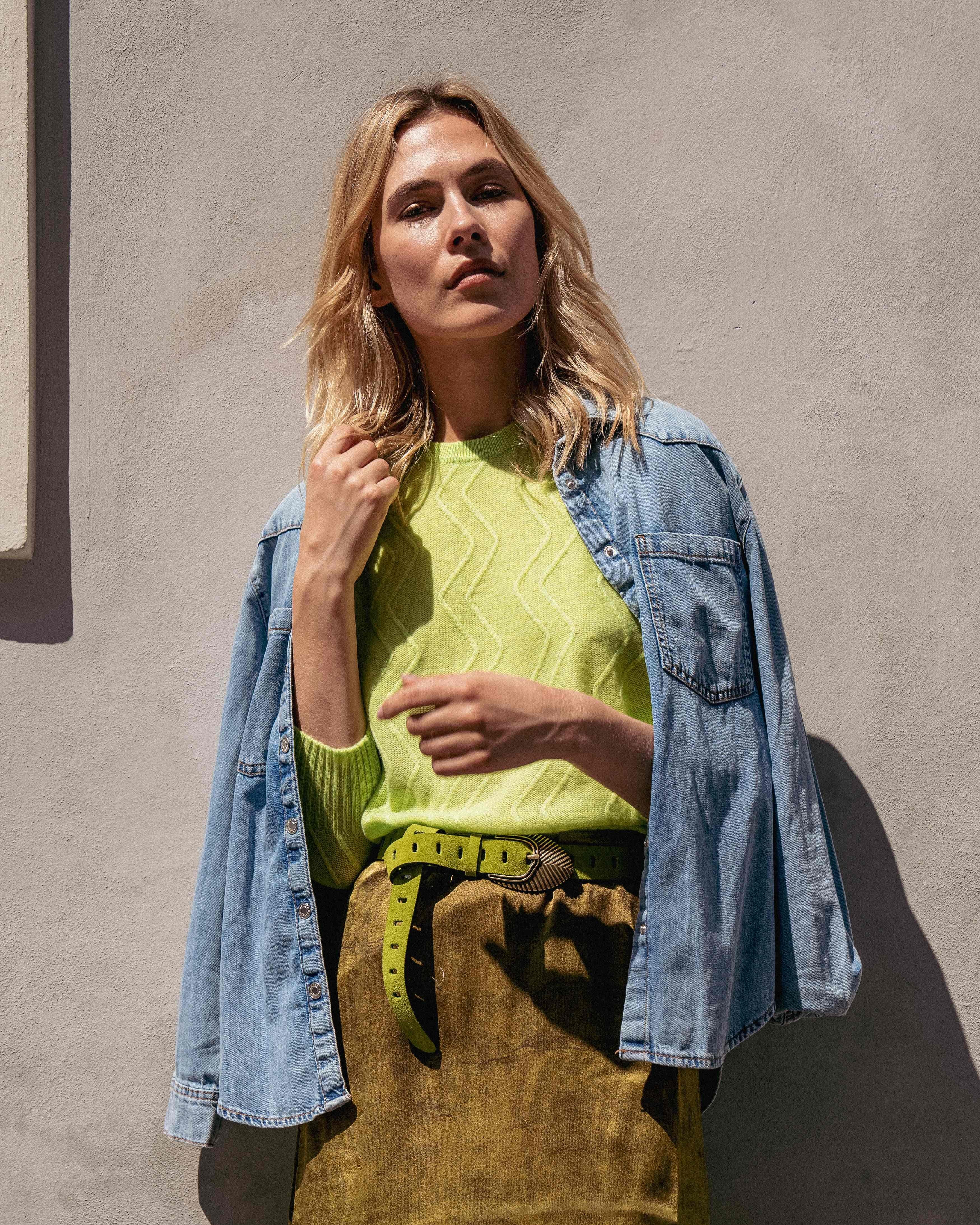 Uno de nuestros imprescindibles este invierno es nuestro 100% cashmere en tono lima con nuestro icónico relieve en zigzag al tono.