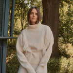 Este jersey combina calidez y estilo en una prenda única. Confeccionado en suave punto de máxima calidad, presenta un cuello alto acanalado que aporta un toque sofisticado y protección extra contra el frío.