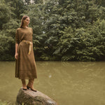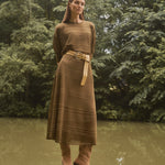 De corte recto y cuello redondo, se adapta con suavidad al cuerpo, manteniendo un aire elegante y sofisticado.