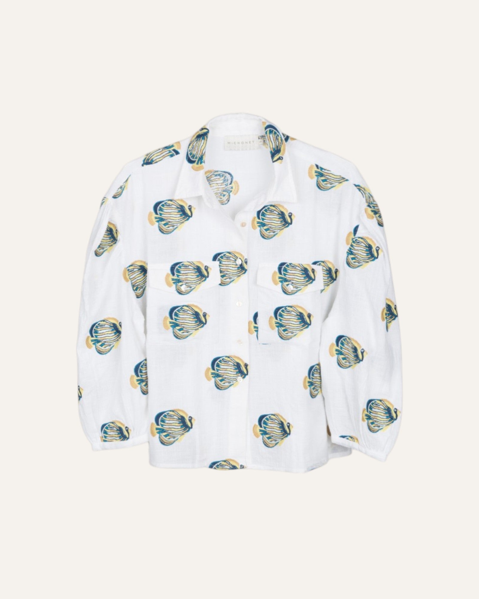 100% cotton shirt with fish embroidery.