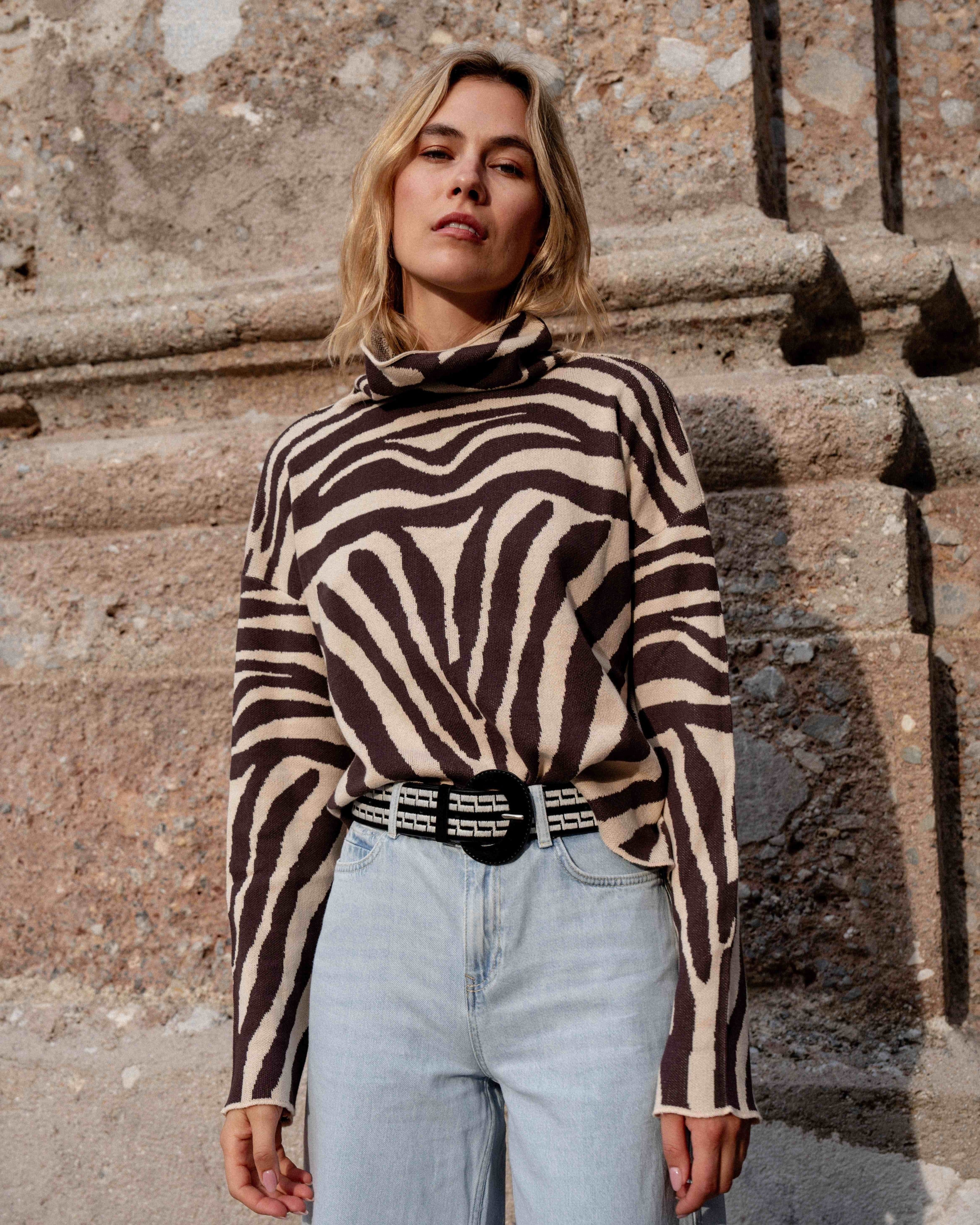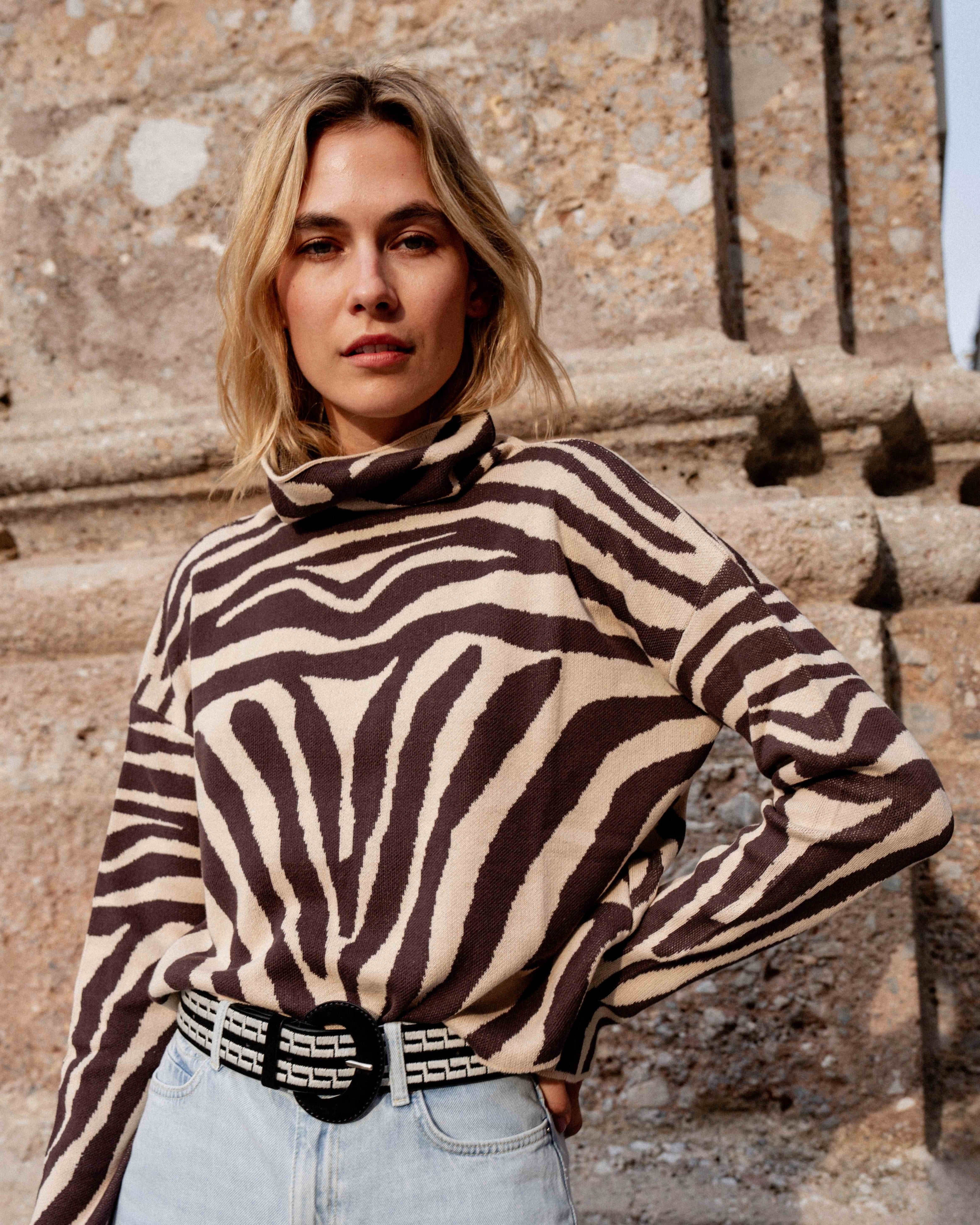 BROWN ZEBRA SWEATER