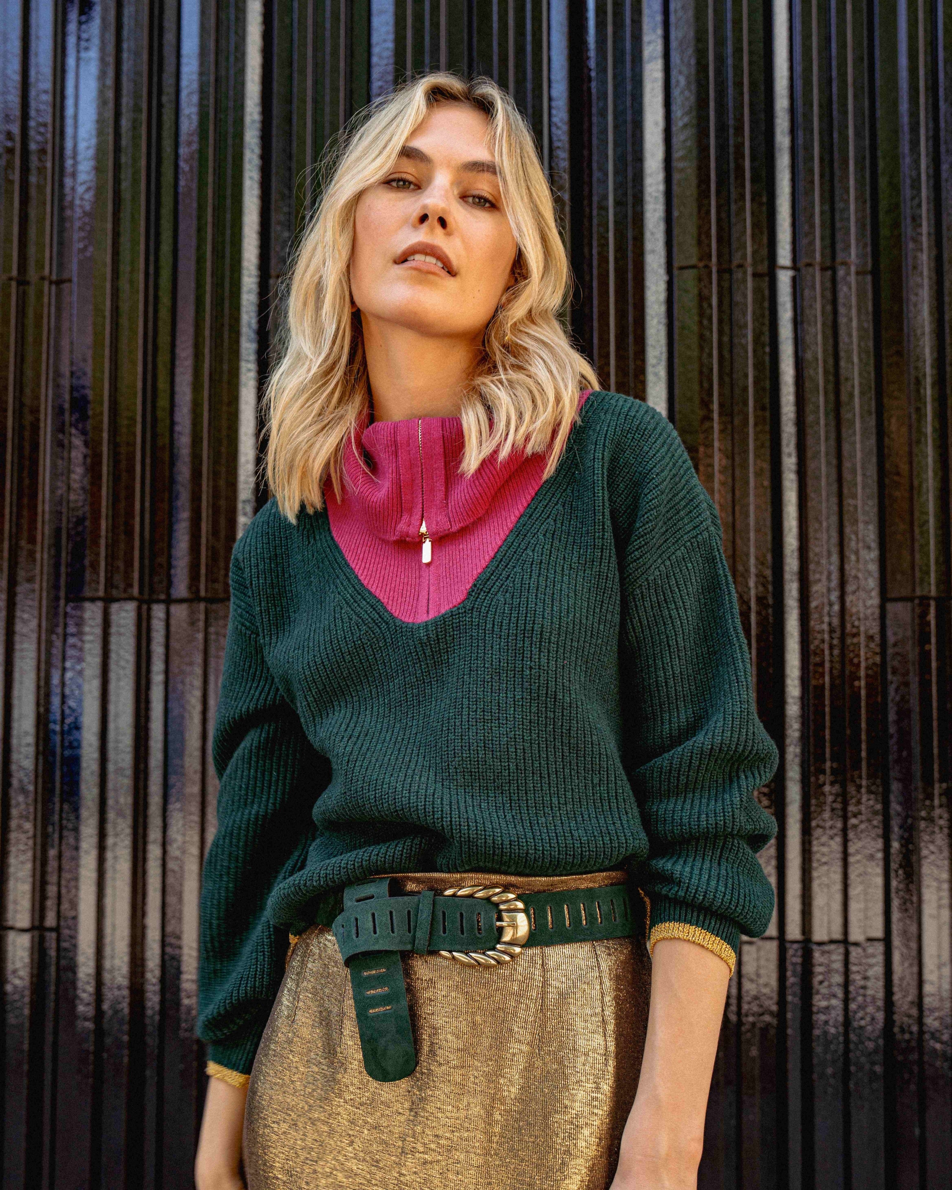PINK ZIP NECK SWEATER