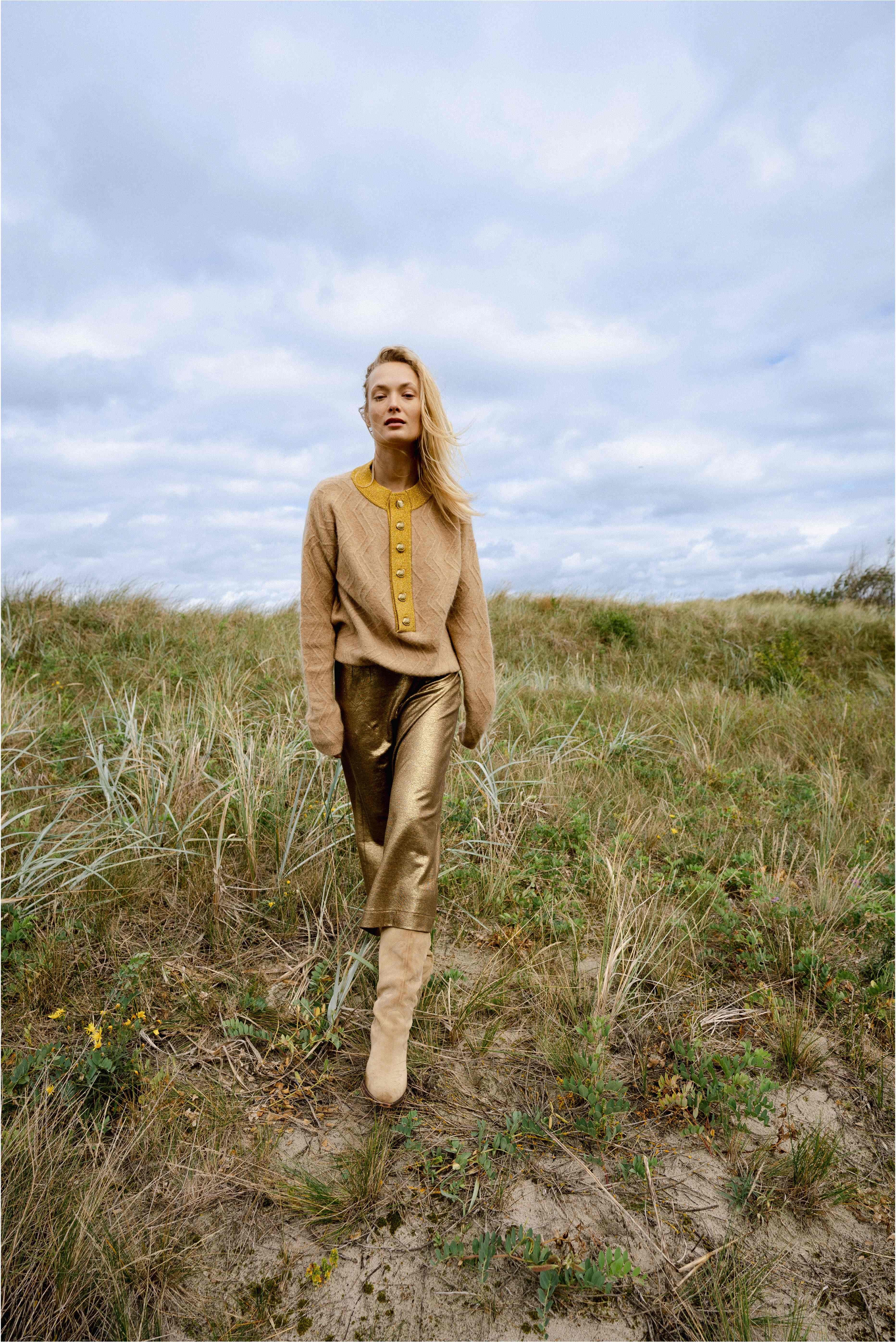 BEIGE GOLD NECK SWEATER