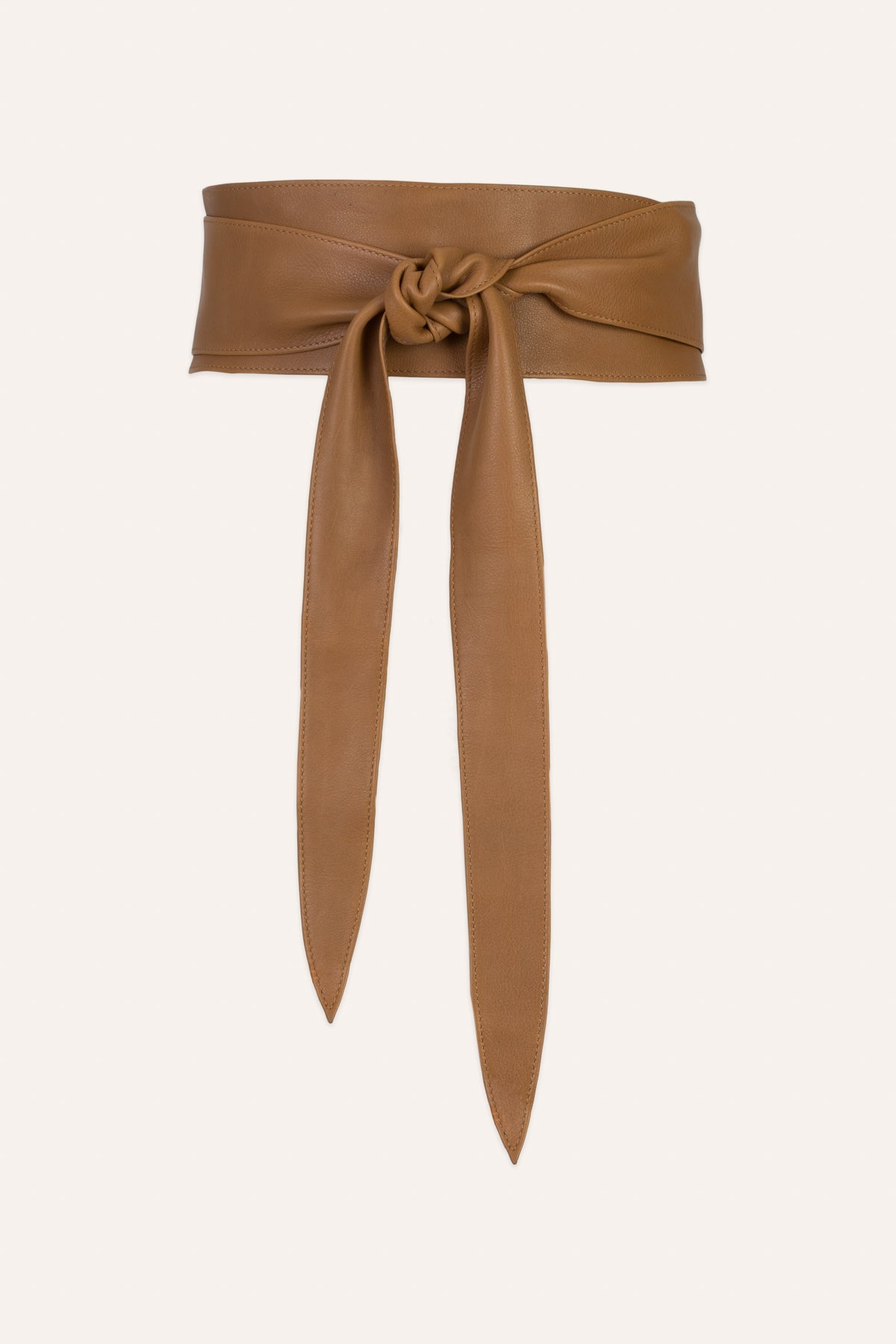 Cinturón de napa en tono beige, elaborado por expertos artesanos con piel de alta calidad. Suave al tacto y muy versátil, es un diseño multiposición que se ajusta fácilmente para acompañar tanto pantalones como vestidos, aportando un aire depurado y elegante.