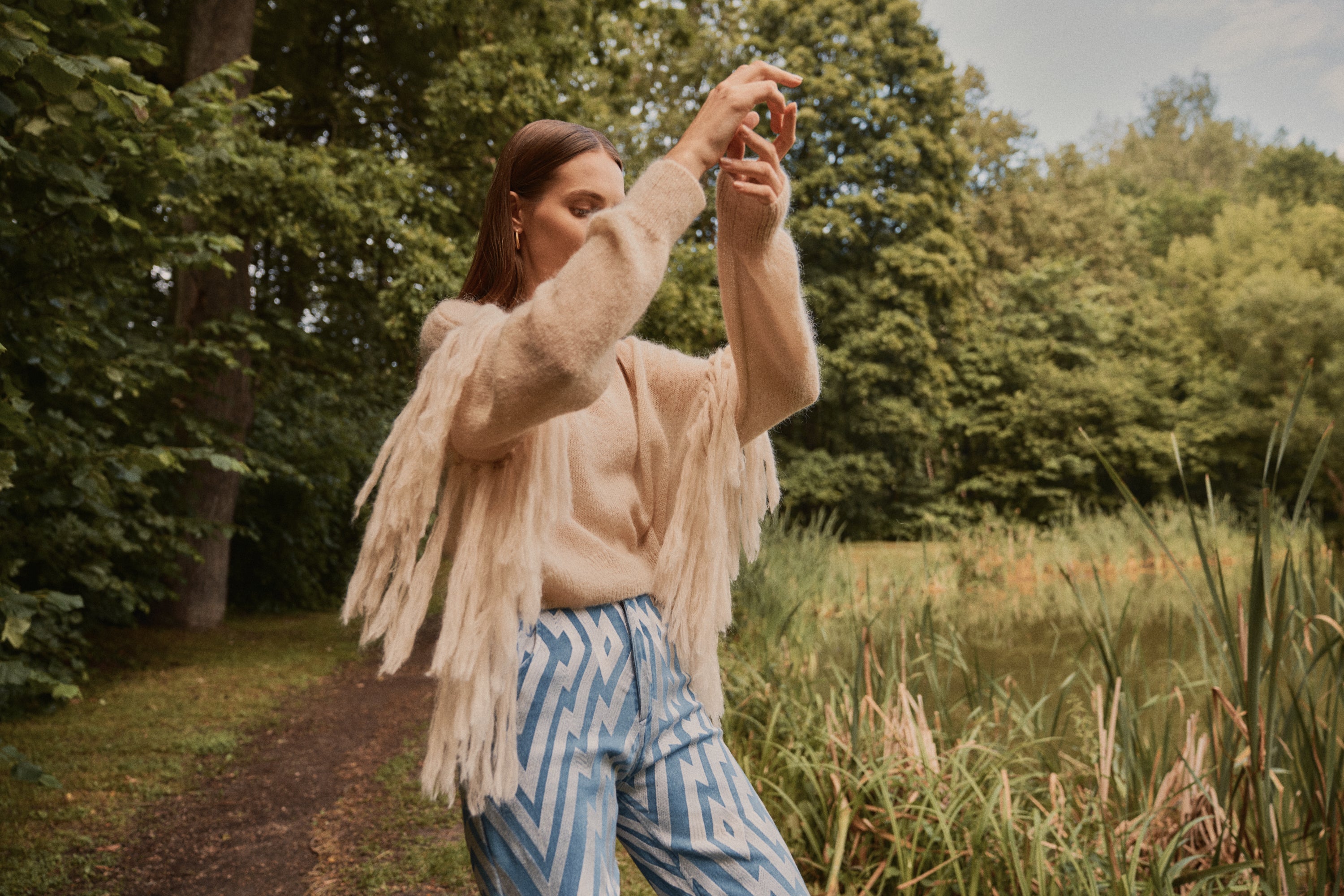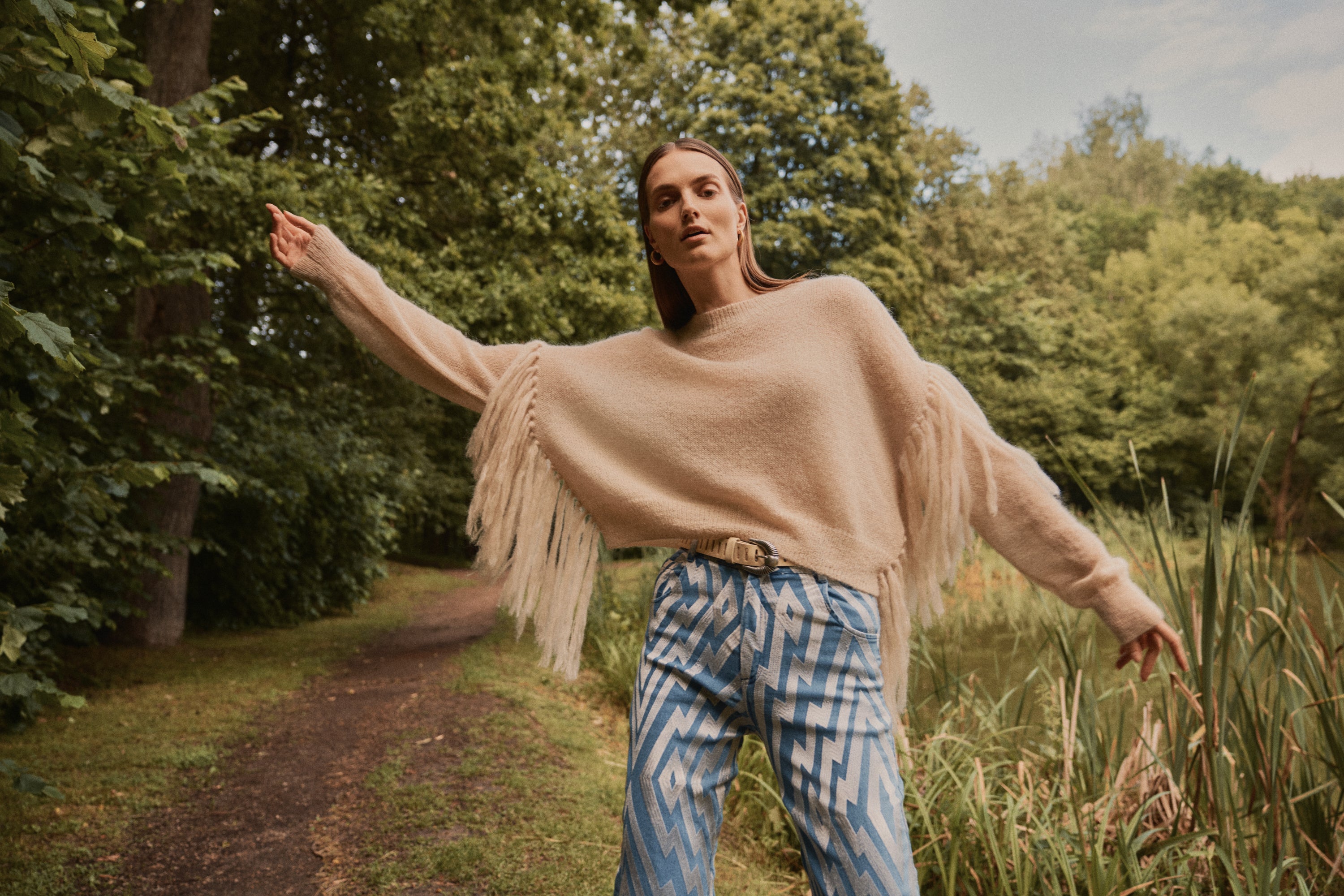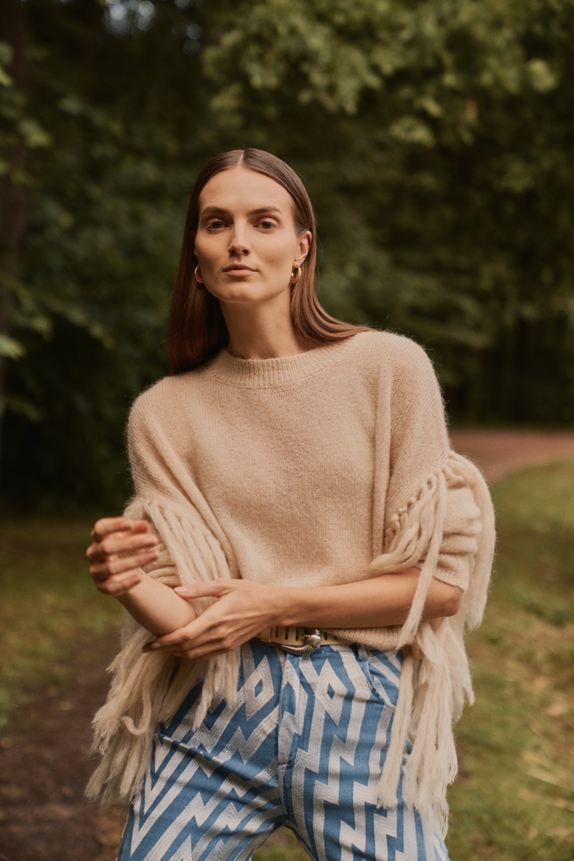 Jersey de mohair semitransparente con flecos en las mangas, el equilibrio perfecto entre la calidez y la ligereza en una prenda de estilo boho relajado.